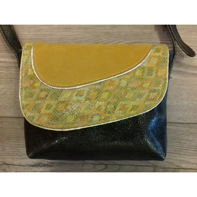 Rabat en cuir moutarde à motifs brillants et en cuir nubuck moutarde.
