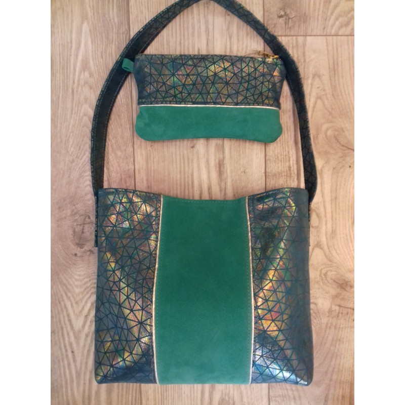 Extérieur en cuir à motifs à reflets brillants impression numérique sur cuir et en nubuck vert.