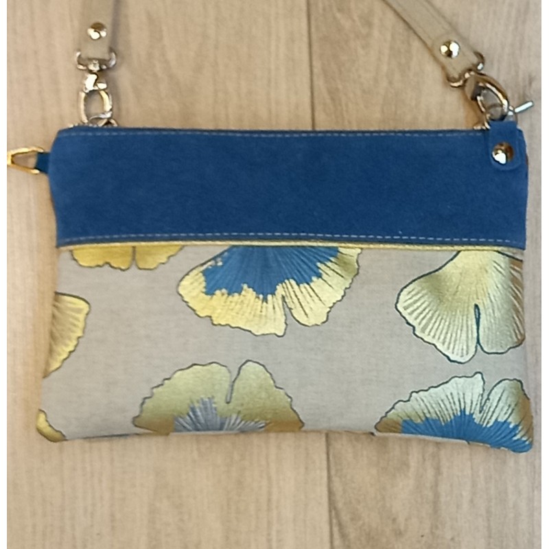 Un coté en cuir nubuck bleu jean et l'autre coté en cuir nubuck camel.